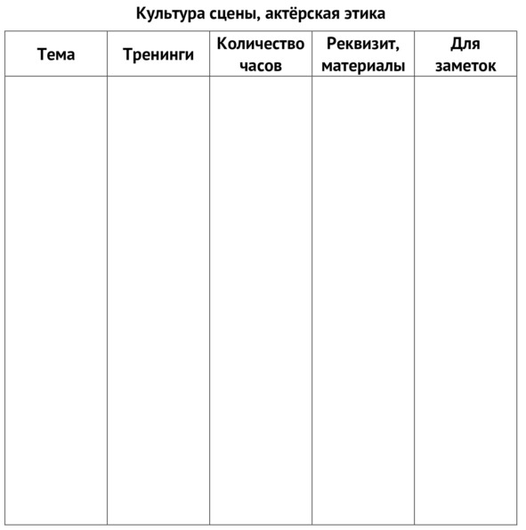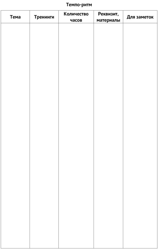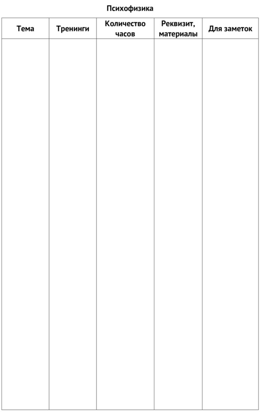 В ячейки вы можете вписывать количество проведенных часов, подтемы занятий, отмечать подходящие тренинги, прописывать практическую деятельность, необходимый реквизит или материалы для занятий, кто присутствовал на занятии и т. д.