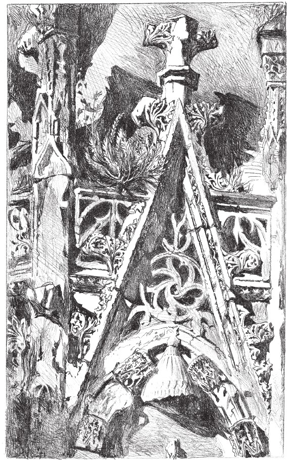 XXIV. Читатель согласится, что вплоть до окончательного расширения прорезей каменная кладка неизбежно считалась, как это и есть на самом деле, жесткой и неподатливой. Так было и во время остановки, о которой я говорил, когда формы узора были еще строги и чисты, изящны, но совершенно тверды.