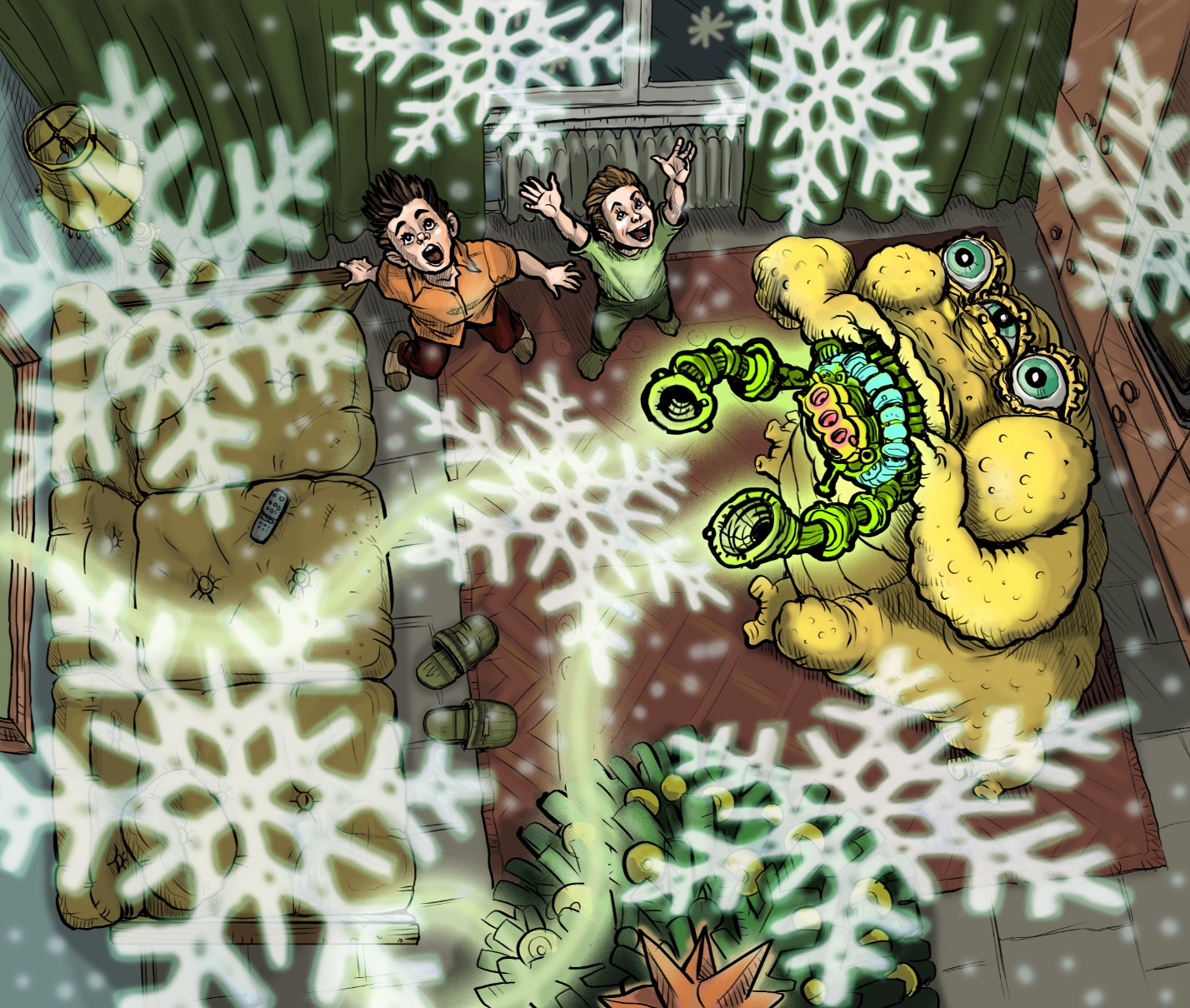 – Мне хорошо, – три инопланетных глаза заблестели. – Мне хорошо! Мне празднично! – закричал Дриздаплюм, – Мне ве-се-ло!!! Расскажите мне про Деда Мороза! Кто это такой? Он что, делает празднично всем-всем детям на этой планете?
