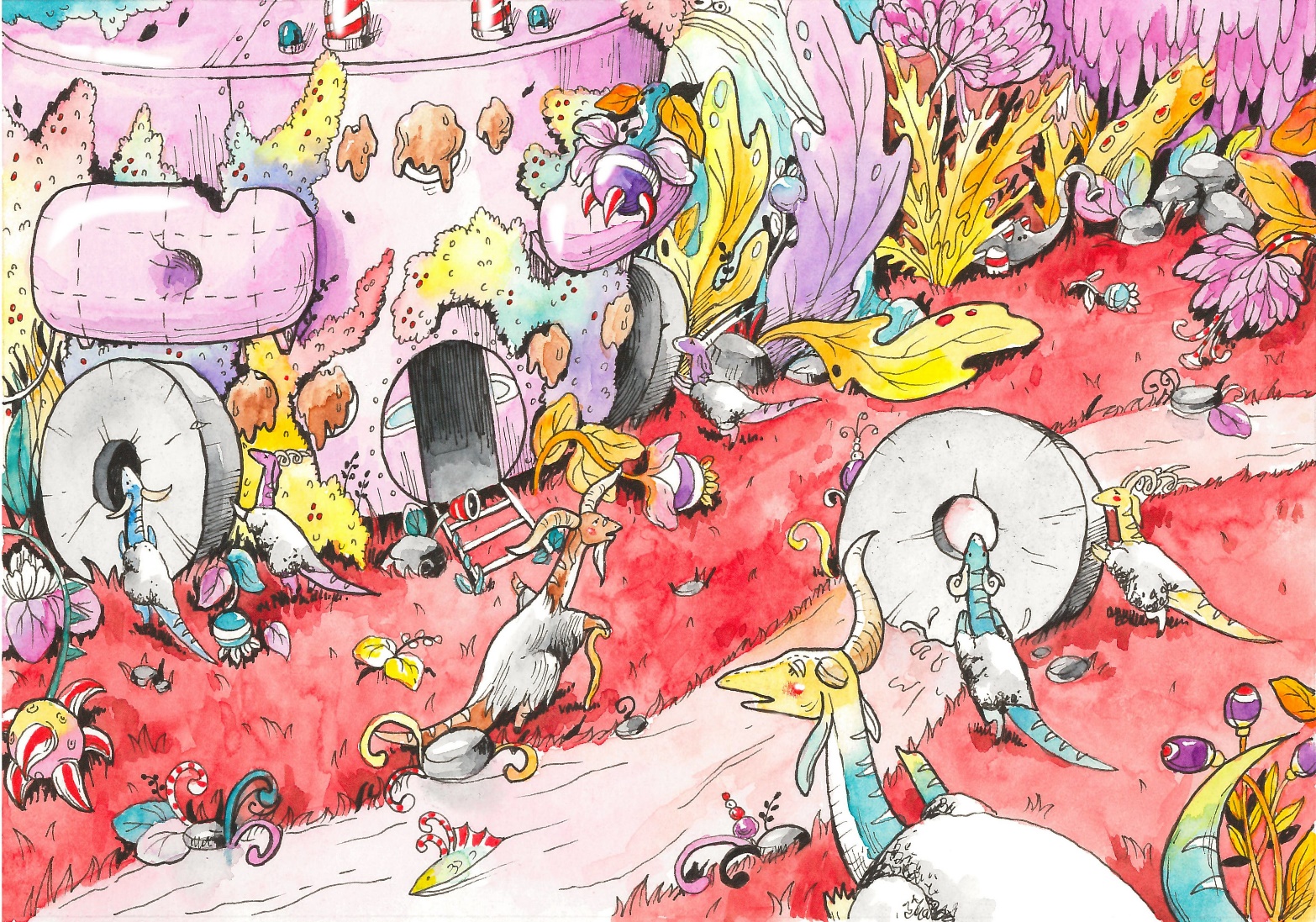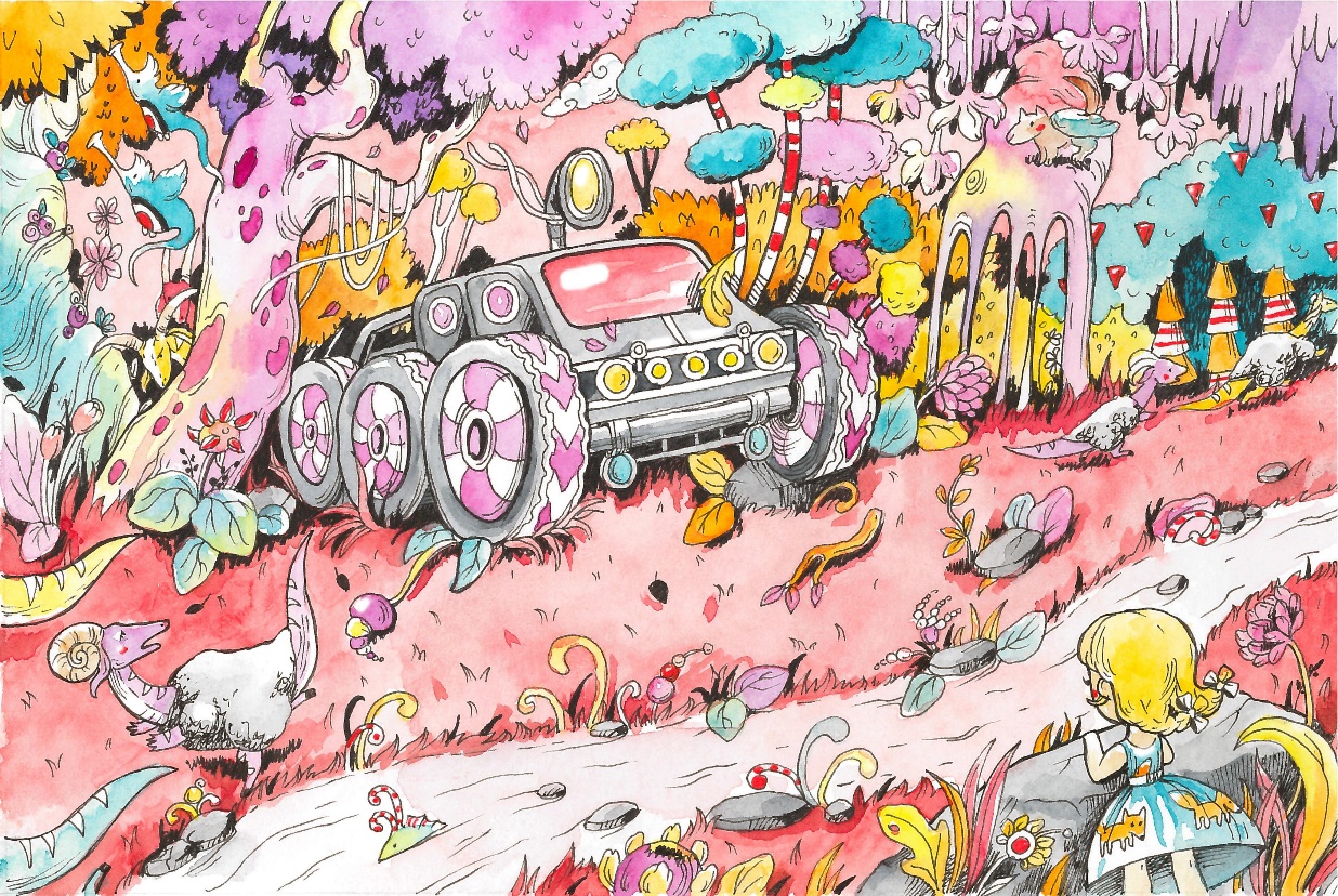 Лисана выбежала из леса и замерла как вкопанная. Бебенц постарался на славу: два огромных каменных колеса криво торчали из-под розового звездолёта и Баранозавры усердно подкатывали третье.