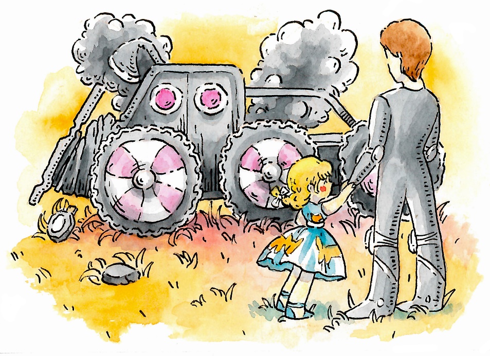 – Как там наш вездеход? – поинтересовалась Лисана у папы. Папа вздохнул и молча показал пальцем в сторону Баодеда. Там, в тени, прятался изуродованный до неузнаваемости вездеход. Он был покрыт чем-то красным, липким и пузырящимся. Окна замазаны глиной, оторванные фары валялись рядом.