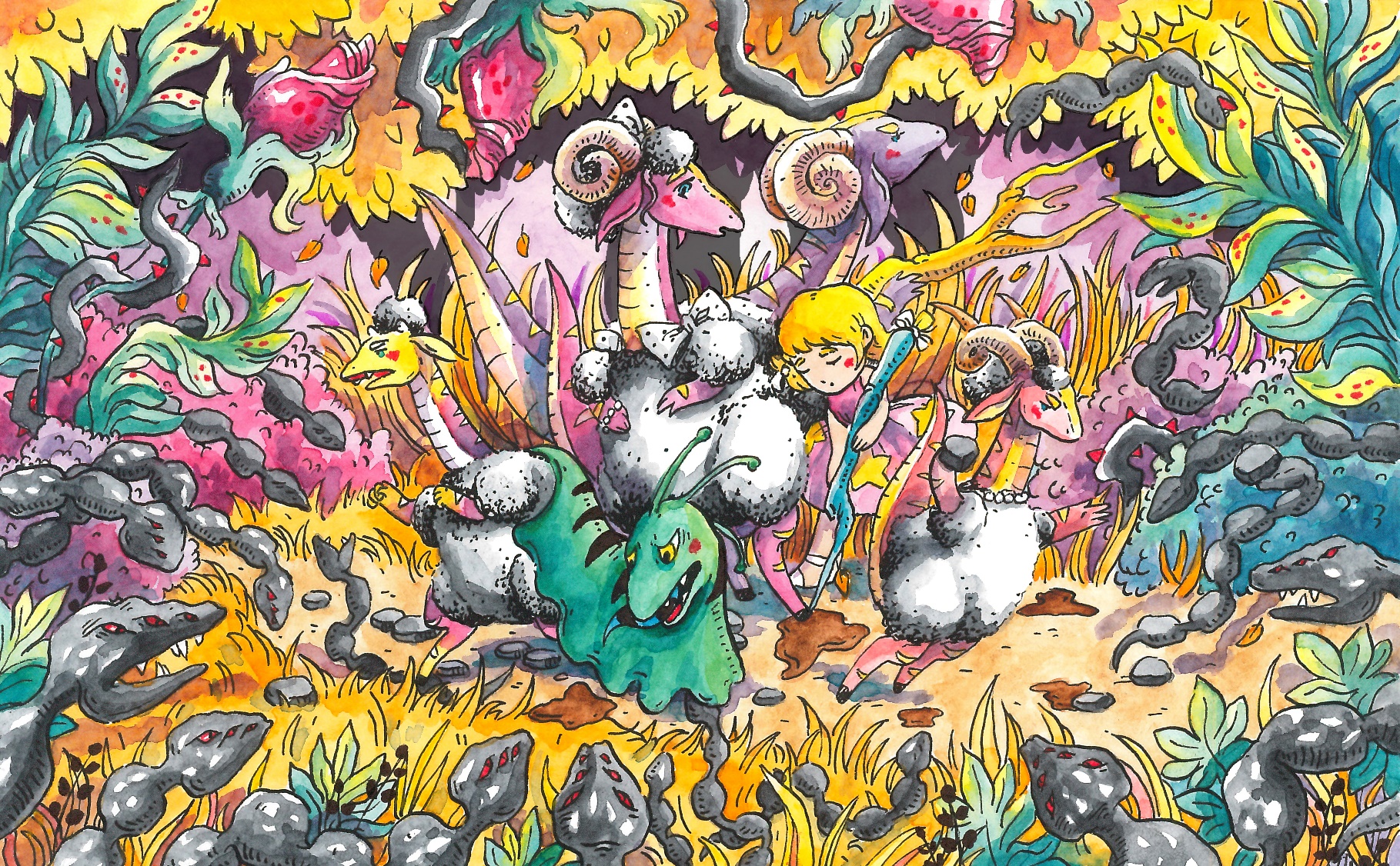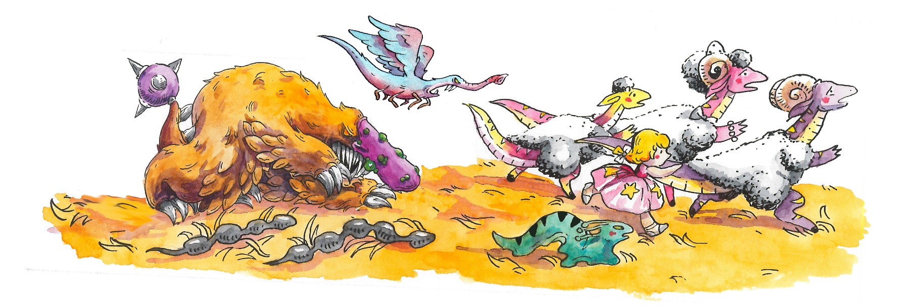 Первым в бой вступил Бебеша. Он смело бросился на врагов, топча их и разбрасывая в стороны. Покрытый розовой слизью, он совсем не боялся липких ловушек. Баранозавры принялись пуляться в нагадюк камнями, отпихивали их палками. Бебелла испуганно блеяла. Лисана лихорадочно тыкала острым сучком возле её копыта, но вонючая липкая масса никак не поддавалась. Баранозавры сражались изо всех сил, но нагадюки и не думали отступать. Они окружали Бебеллу и её защитников. Шипящее и извивающееся кольцо медленно сжималось.