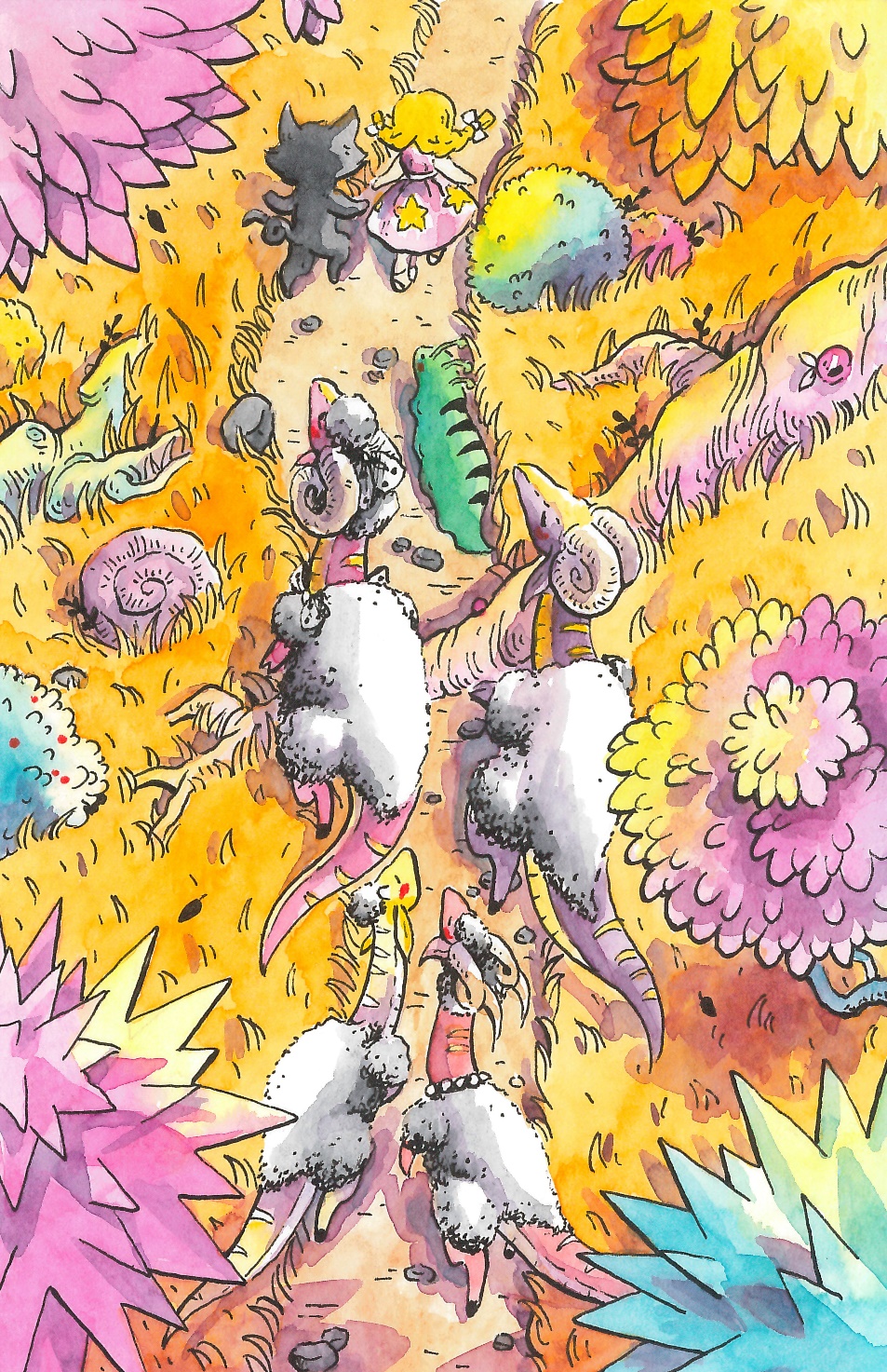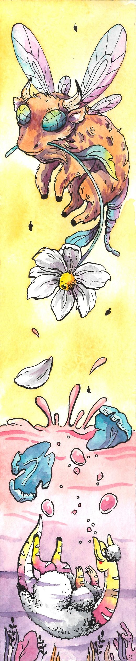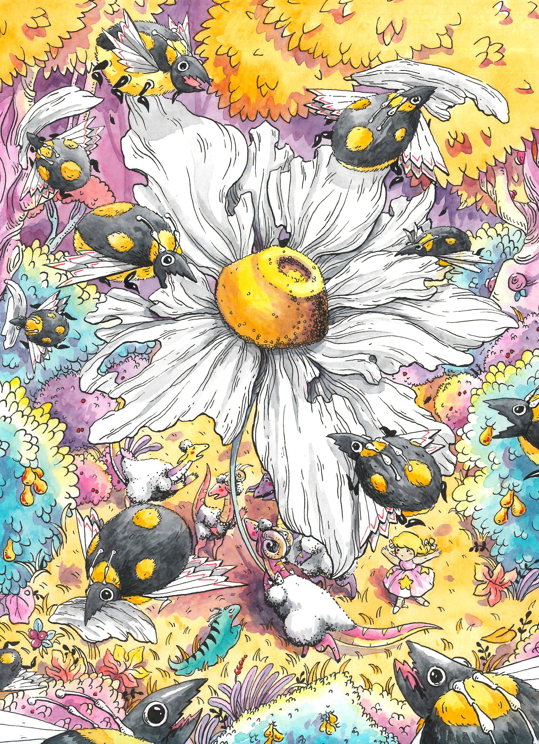 – Не-е-ет! – отчаянный вой Бебеллы всполошил лес. Тысячи птиц, гигантских пчёл и летучих ужей с визгом и треском взметнулись над лесом. Все подняли головы и увидели обглоданный стебель добромашки. Над ним кружились упитанные лохматые чёрные насекомые в жёлтый горошек.