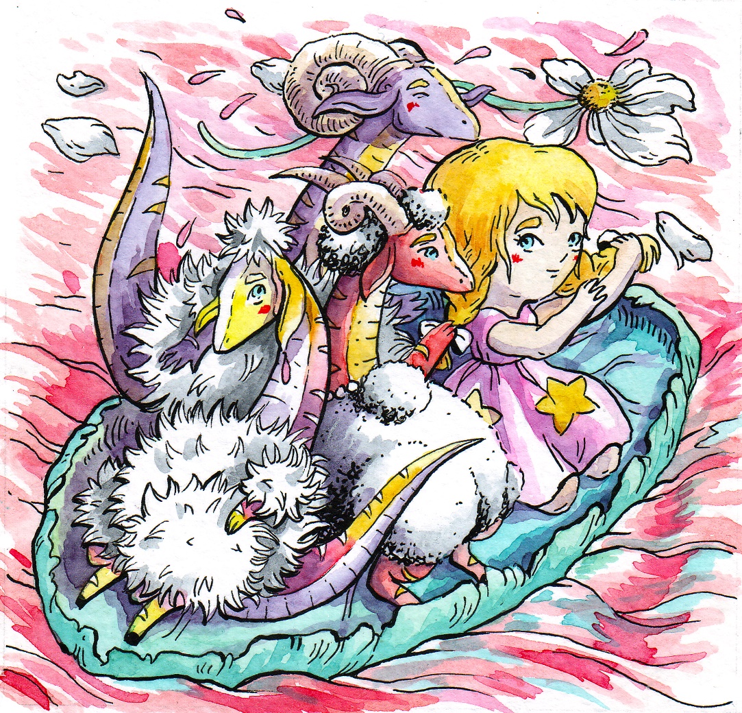 Стрекозубр завис над их плотусом, рябь пробежала по воде от взмахов его мощных крыльев. Он схватил лапами добромашку и потянул её вверх, увлекая вместе с ней в воздух ничего не понимающего Беню.