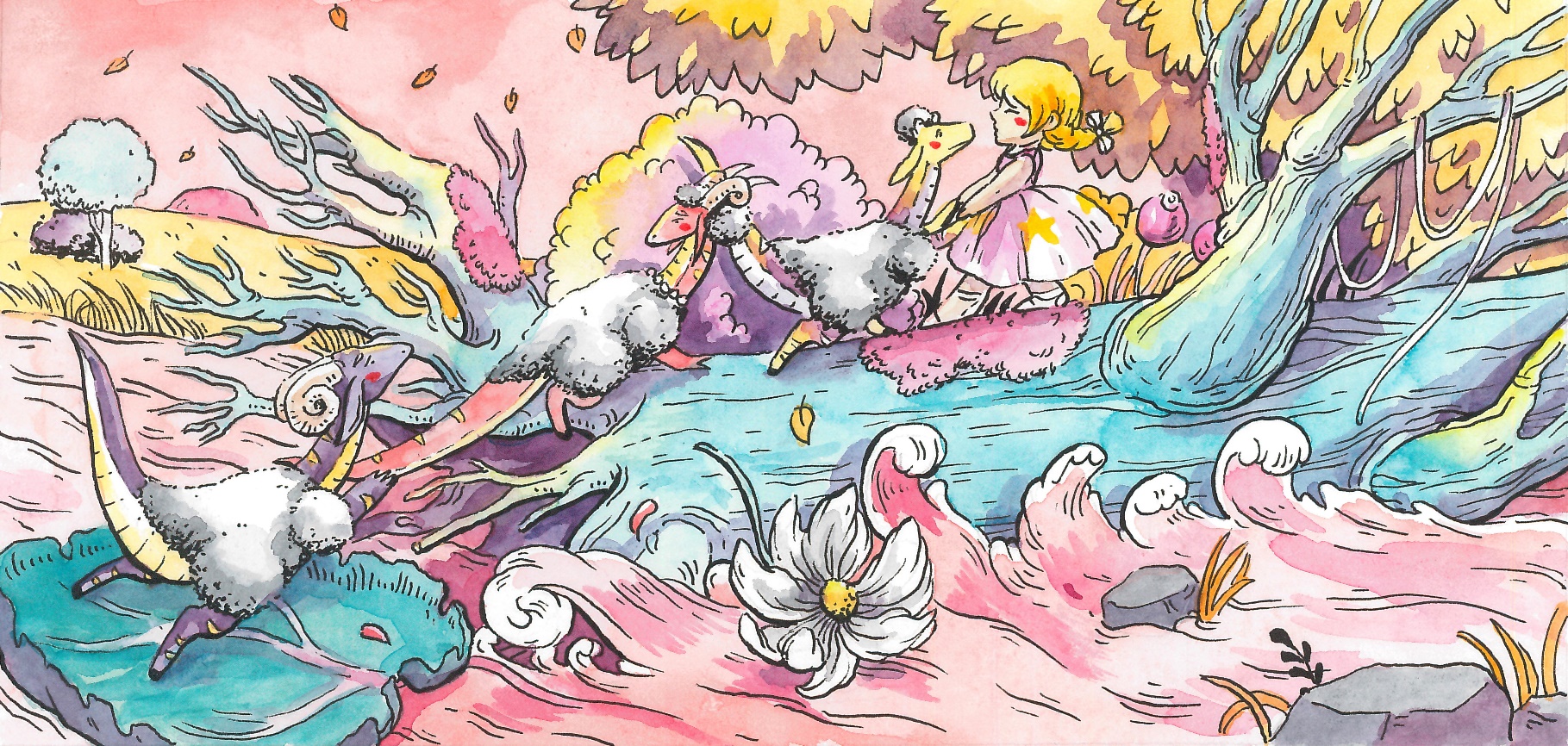 Осторожно ступая по скользкому дереву, друзья медленно перебрались на берег. Они спешили найти Бебеллу и оставшийся у неё последний цветок добромашки. Цепочкой, осторожно переступая через крупные камни и прибитые к берегу ветки, Лисана и баранозавры шагали вниз по течению. Скоро они увидели их – Бебелла с Бебешей ждали у ручья.