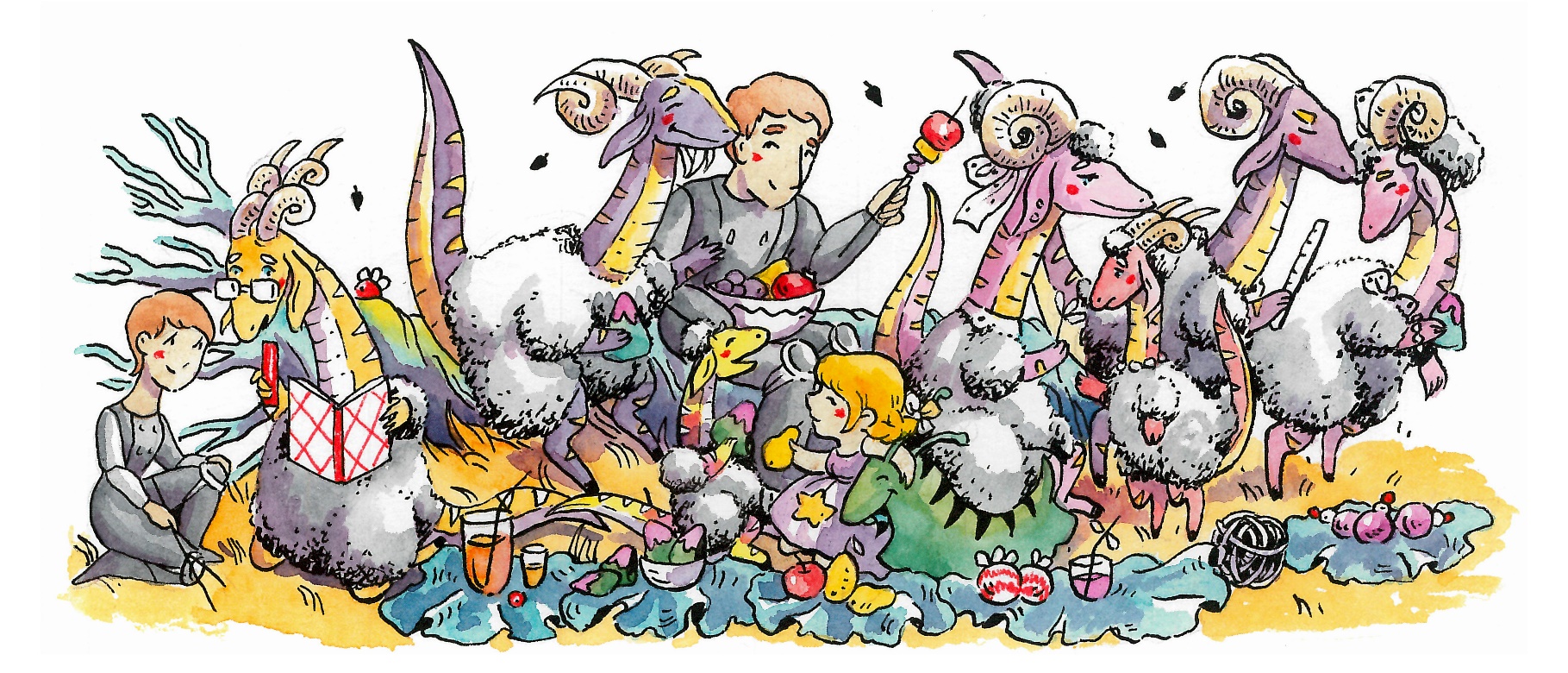 Баранозавры разбежались по лесу в поисках крыльев, клыков и пятачков, а Лисана с папой и мамой вытащили пледы, и, вооружившись ножницами, стали кроить из них подобие одежды.