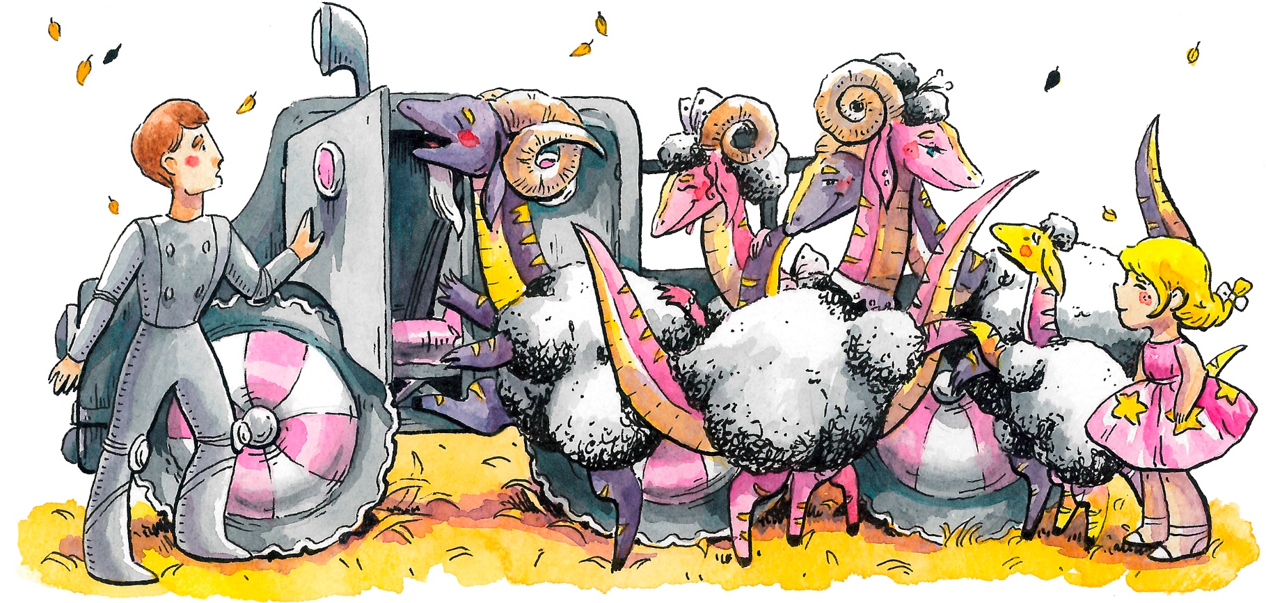 Баранозавры, высунули морды в окна машины и радостно блеяли, не обращая внимания на ветви деревьев, что шлёпали их по рогам и носам. Лисану зажало, словно большими пушистыми подушками, но она не жаловалась, опасаясь что шерсть баранозавров набьётся ей в рот. Папу Славу с мамой Леной придвинули вплотную к лобовому стеклу, и папе только каким-то чудом удавалось поворачивать руль.