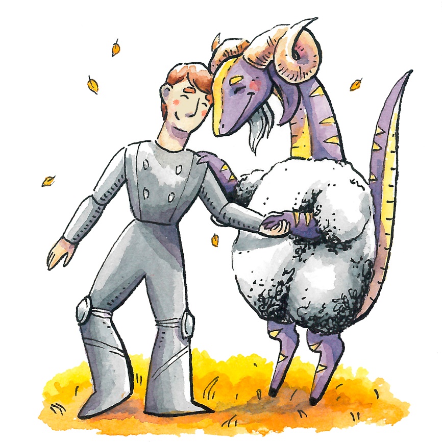 Тут из леса выскочил огромный червящер. На чешуйчатой спине, расправив плечи, гордо восседал Бенокентий. Он грозно свёл брови и у воинственно заблеял. Стражники с поросячьим визгом дали стрекача, подняв клубы пыли. За Бенокентием из леса выехал вездеход. Резко развернувшись, он нацелился прямо на клетку. Лисана и баранозаврята крепко прижались друг к другу и замерли. Папа Слава нажал на газ, и машина с рёвом протаранила угол клетки, пробив в ней приличного размера дыру. Дверь вездехода распахнулась.