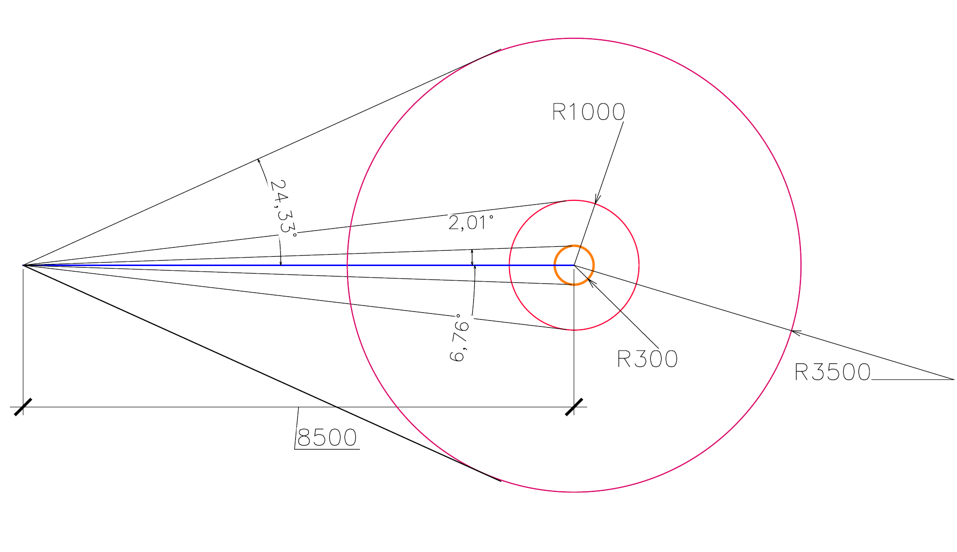 Этот раздел носит графический характер и помогает визуализировать информацию о расположении ГЦ в сидерической системе (рисунок 3). Отдельно необходимо обратить внимание, что также отражены границы активной части Бладжа с радиусом 1000 парсек и наблюдаемой астрономами с радиусом 3500 парсек. Углы границ, при взгляде с Земли на ГЦ, приняты в соответствии со схемой (рисунок 4). Если практикующий читатель пользуется астрологическими программами, например Zet версии 9.2.29, то ГЦ расположен в районе звездных туманностей М6 и М7. (рисунок 3)