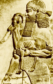 Царь Ассирии Саргон II (он правил в 712–707 годах до н. э.) изображён на фасаде дворца с жертвенным козлёнком в руках.