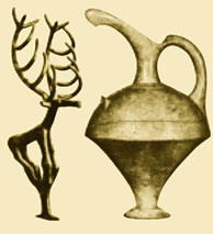 Эти два предмета – великолепный керамический сосуд (XVIII век до Р. Х.) и наконечник знамени в виде оленя (XXII век до Р. Х.) – говорят о большом художественном вкусе мастеров-хеттов.