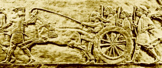 На каменном барельефе VII века до н. э. мы видим ассирийцев, идущих в бой.