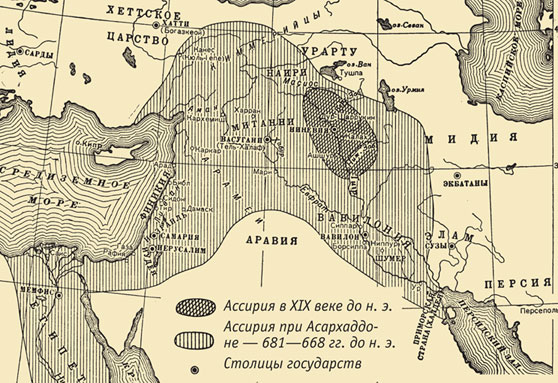 На карте представлена Ассирия, территория которой с течением времени существенно менялась.
