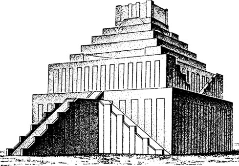 Семиярусная Вавилонская башня, увенчанная небольшим храмом. Её размеры в плане 90 × 90 × 90 метров.