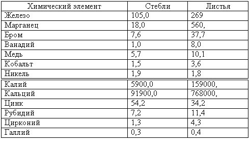 Биохимический анализ листьев и стеблей золотого уса обнаружил наличие следующих химических элементов: