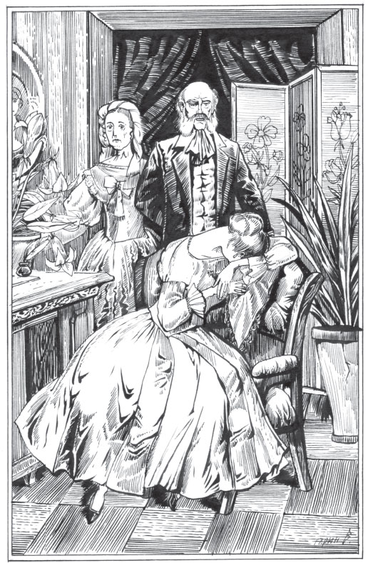 Наступи́ла зима́, и они́ бо́льше не могли́ встреча́ться, но их перепи́ска сде́лалась ещё живе́е. Влади́мир Никола́евич в ка́ждом письме́ проси́л её венча́ться[4] та́йно, уе́хать на не́которое вре́мя, пото́м бро́ситься к нога́м роди́телей, кото́рые, коне́чно, уви́дев их любо́вь, простя́т их.