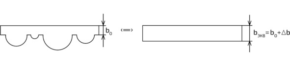 Чтобы учесть это явление, рассчитаем толщину плоского слоя герметика, имеющего такое же сопротивление паропроницанию, как исходный слой с выпуклостями в местах расположения пор, толщина bo которого10 максимальна и равна 3 +1,5 = 4,5 (мм). Расчетную толщину плоского слоя будем называть эквивалентной (рис. 16).