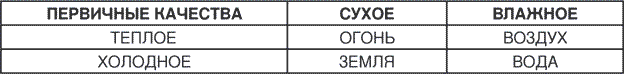Таблица 2. Формирование четырех стихий как взаимодействие первичных качеств