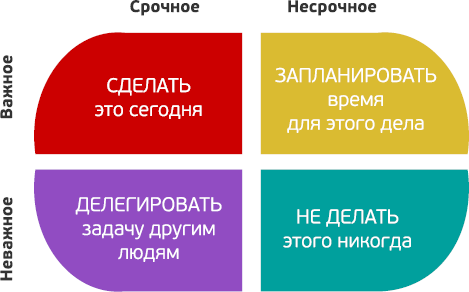 Понять, какие задачи важны, а какие нет, поможет известная матрица Эйзенхауэра, которая помогала президенту США сначала справляться с командованием армией, а потом – с управлением страной.