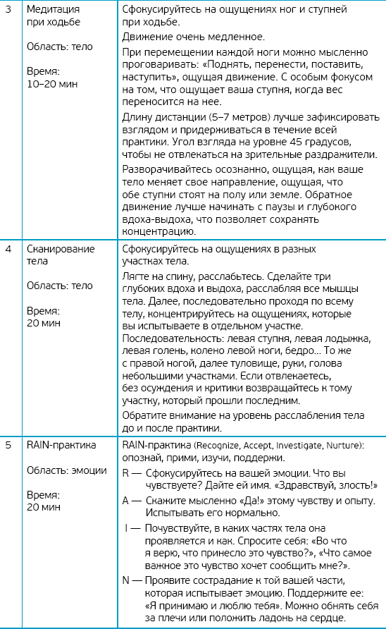 К практикам осознанности тела относятся практики 1–4 из таблицы ниже.