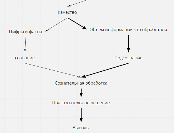 То есть сначала вы должны проанализировать всё, что нашли на уровне сознания, загрузить как можно больше информации себе в мозг. Далее нужно произвести сознательную обработку всего, что вы в итоге вывели, и перевести решения на уровень подсознания, так как именно оно сможет завершить весь анализ. После чего уже появятся выводы.
