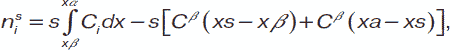 где nis – избыток количества вещества в поверхностном слое; xb и xa – объемы разделяемых фаз;