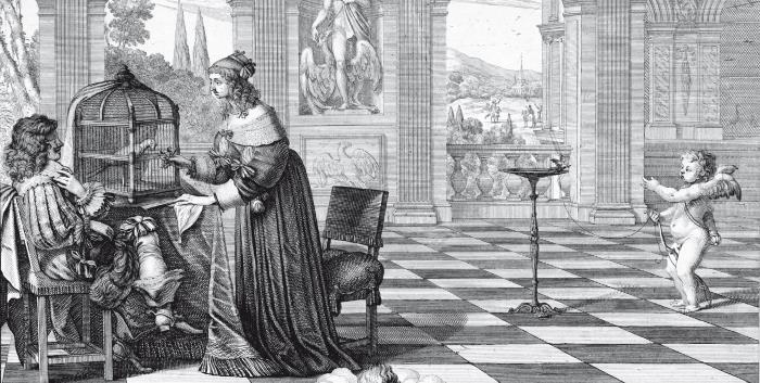 Однако госпожа де Рамбуйе сумела создать такое пространство, которое в равной степени отстояло от этикета и от семейной рутины. В устроенной ею «голубой комнате» (по свидетельству Таллемана де Рео, «маркиза первая придумала применять для отделки комнат не только красный или коричневый цвет»)[9] постепенно начало собираться небольшое общество, соединявшее как образованных вельмож, так и незнатных людей, примечательных своими талантами. Это не означало, что их принимали как равных: дистанция между титулованной аристократией и представителями даже верхних слоев третьего сословия была очень велика. Но в «голубой комнате» на первый план выходило не положение человека, а его «вежество» (civilité) и способность быть приятным обществу. Поэтому в кругу госпожи де Рамбуйе одну из ведущих ролей мог играть Венсан Вуатюр, сын амьенского виноторговца. Конечно, будучи наследником немалого состояния, он получил прекрасное образование в коллеже де Бонкур, где его соучениками были отпрыски знатных родов. Все это помогло ему сделать блестящую карьеру сперва в окружении Гастона Орлеанского, а затем обратить на себя внимание кардинала де Ришелье. Тем не менее в особняке Рамбуйе его принимали не вопреки происхождению и не благодаря служебным заслугам, а потому, что он был прекрасным собеседником и, безусловно, лучшим светским поэтом своего поколения. Как сказала маркиза, когда после смерти Вуатюра ей кто-то заметил, что покойный был не лишен ума: «Неужто вы полагаете, что его всюду принимали благодаря его происхождению или стройному стану?»[10]