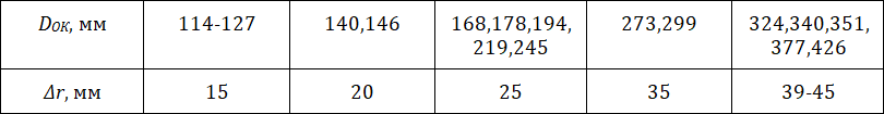 Таблица 7. Рекомендуемый зазор между стенками скважины и муфтой обсадной колонны