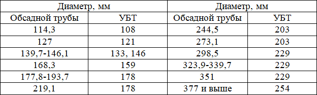 Таблица 8. Рекомендуемые соотношения диаметров УБТ и обсадной колонны, под которую ведется бурение [69]