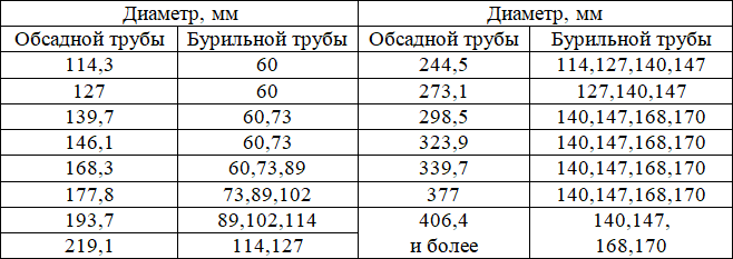 Таблица 10. Рекомендуемые соотношения диаметров бурильных труб и обсадных колонн [66]