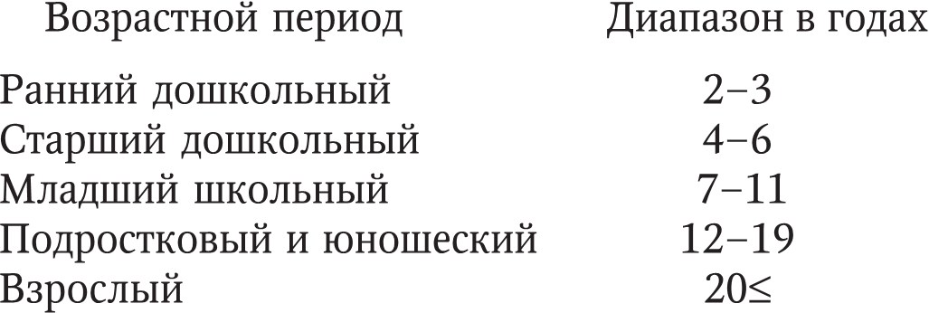 Следует отметить, что различные и даже сходные методики могут быть рассчитаны на разные возрастные диапазоны, 2–17, 3–12, 4–25 и т. д. , а возрастной диапазон, на который они рассчитаны, не всегда совпадает с принятыми границами этапов развития.