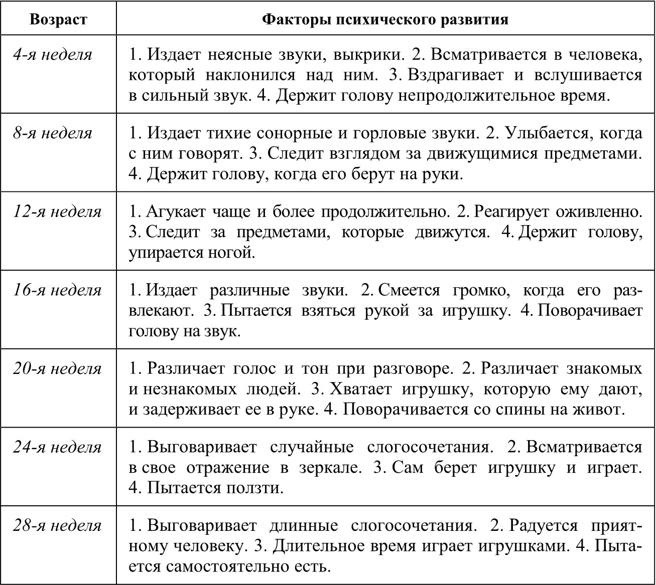 Возрастная шкала оценки психического развития детей первого года жизни