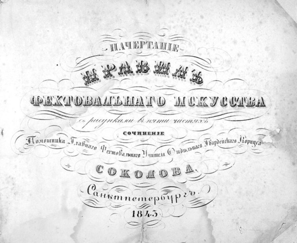 Обложка книги Соколова Н. В. «Начертание правил фехтовального искусства» 1843 г.