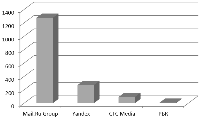 * ООО «Европейская медиа группа» условно присвоено значение 0.
