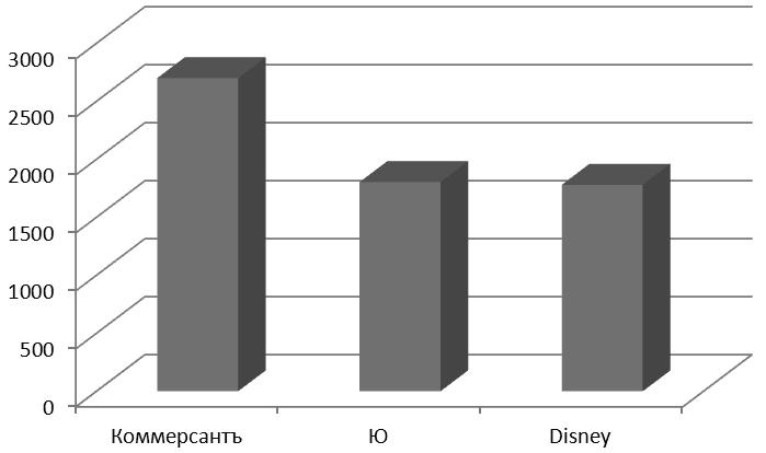 Рис. 11. Выручка ИД «Коммерсантъ», Ю и «Disney» в 2012 г. по РСБУ (млн руб.)