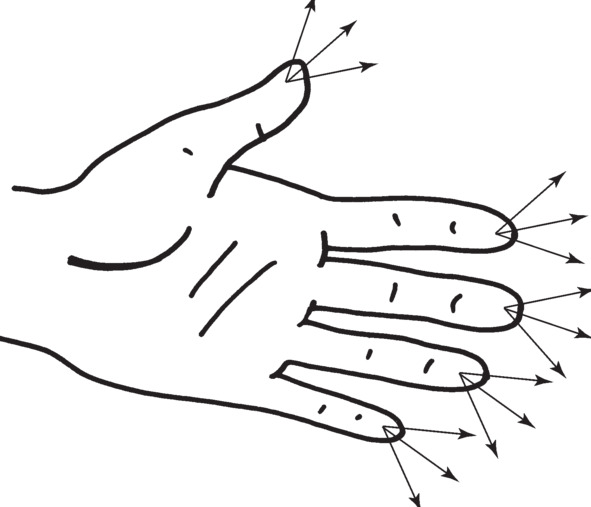 Аура пальцев руки – словно бесцветные лучики энер- гии срываются с кончиков пальцев. Они еще похожи немного на марево горяче- го воздуха над асфальтом в солнечный день.