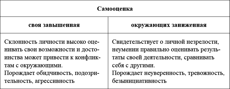 Самооценка отражает степень развития человека (самоуважения, самоценности) (табл. 2).
