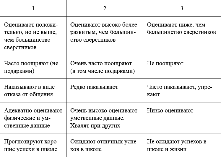Развитие самооценки детей в зависимости от особенностей воспитания (по М.И. Лисиной)