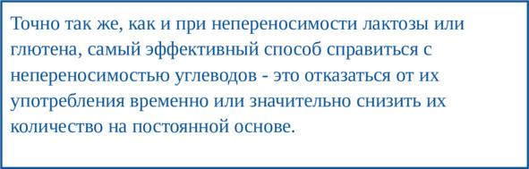 При непереносимости углеводов организм не реагирует нормально на их потребление, а повышенное потребление углеводов только усугубляет проблему.