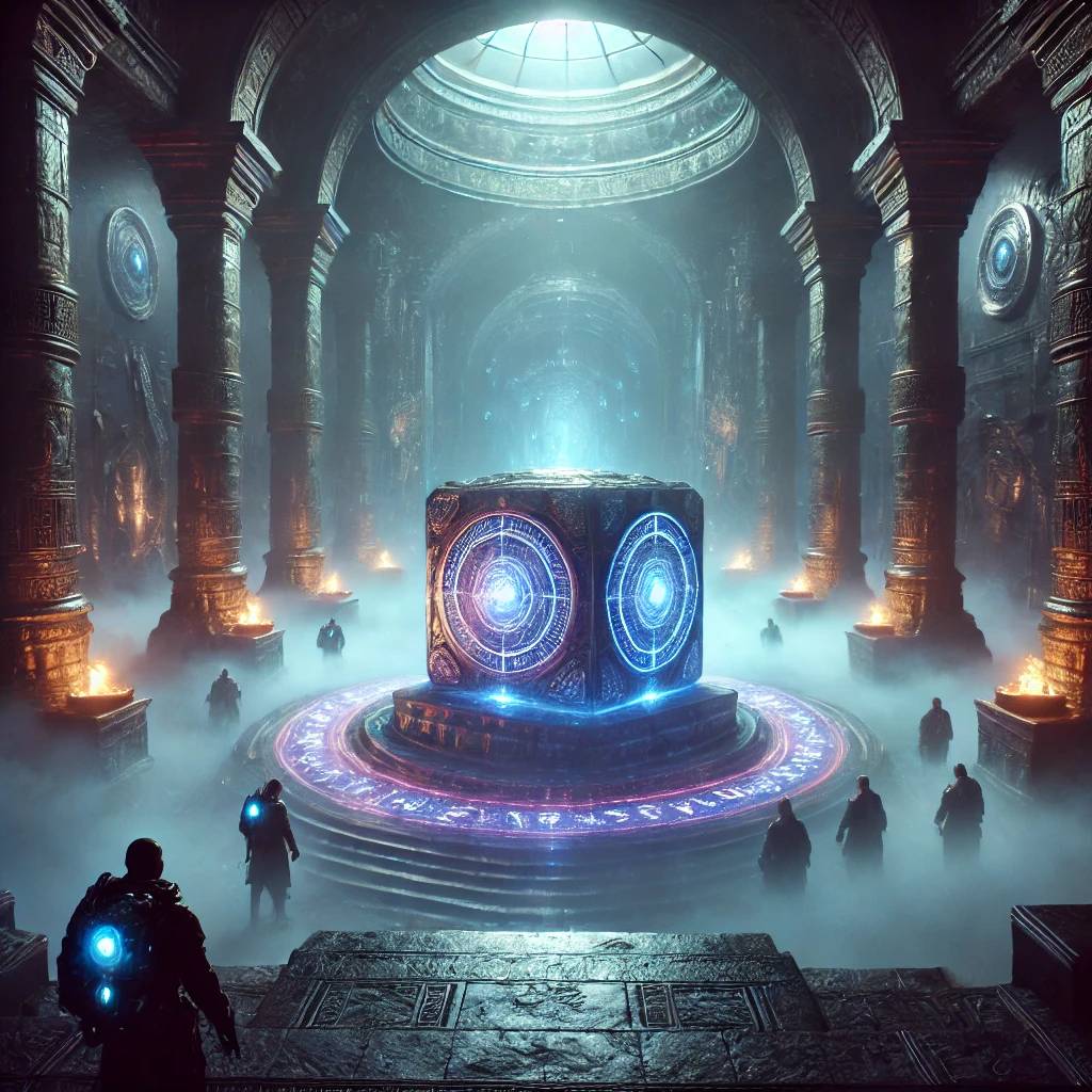 Мягкий свет кристаллов, едва проступающих сквозь туман, освещал их путь, добавляя атмосфере загадочности. Каменные платформы, окружающие алтарь в центре, покрывали странные узоры, которые светились, когда на них падал свет. Казалось, что древние символы жили своей жизнью, реагируя на присутствие гостей.