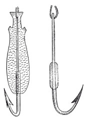 Ловля в наметку удобнее тем, что рыба берет с разбега жаднее и живость червя не играет никакой роли, так как он, поддергиваемый удилищем, находится в постоянном движении. Но зато он должен быть очень крепок, ибо, задевая за дно и траву, часто рвется. Лучше всего насаживать двух на крючок с лопаточкой, чтобы первый был пропущен на леску. На быстрине хариус берет на червя смелее, охотнее и раньше, чем в омутах.