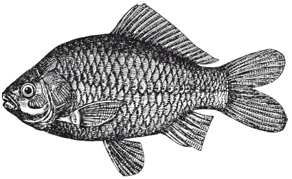 Наружность карася очень хорошо всем известна, и потому нет надобности описывать ее во всех подробностях. Карась легко отличается от всех других наших пресноводных рыб своим более или менее круглым туловищем, сильно сплющенным с боков, хотя он все-таки значительно толще леща. Слово «карась», как известно, употребляется иногда в нарицательном смысле – и толстого, неуклюжего человека как раз назовут этим прозвищем. Своим высоким, сжатым телом и отсутствием усов карась легко отличается от ближайшего своего родственника – карпа, так же как числом и положением глоточных зубов, которых у него по 4 с каждой стороны и в одном ряду.