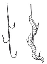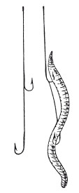 Рис. 99. Червь, насаженный на снасточку в 2 крючка