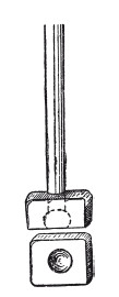 Так как при ловле на рогульки часто бывает, что сом, смотав леску, уходит в коряги и там запутывается, а во всяком случае лежит на дне, сберегая свои силы, то в юго-западной России настоящие жерлицы заменяются так называемые «крючками», которые в сущности представляют упрощенную жерлицу. Рогульки тут не имеется, и ее заменяет небольшой запас лески, около метра, защемляемый в расщеп на конце тычка. Последняя несколько отлична от жерличного шеста или жерди и имеет больше общего с удильником, так как должна быть очень крепка, довольно гибка и упруга. Очень крепко втыкать ее в берег или дно, подобно шесту, не следует, чтобы крупный сом не мог ее сломать или оборвать бечевку, а только бы выдернул. Тычки эти, как и жерличные шесты, отнюдь не должны быть белого цвета, а темного (липовые, вербовые), почему их иногда приходится чернить, как и бечевку. Самые «крючки», употребляемые в Киевской губернии, несколько отличаются от обыкновенных, что видно из рисунка (рис. 114), и приготовляются здесь на месте самыми рыболовами или слесарями из толстой телеграфной проволоки. Преимущества этого крючка перед другими, однако, весьма сомнительны, и между сотнями образцов английских крючков можно найти немало гораздо более надежных и более цепких. Тычки втыкаются таким образом, чтобы свободный конец их находился на 0,7–1 м от воды; насадка же, почти всегда живец, должна быть или на 35–50 см от поверхности воды, или на 18–35 см от поверхности дна. Обыкновенно ставят и донные, и верховые крючки, причем первые имеют грузило, а последние его не имеют.