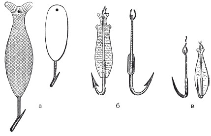 Рис. 153. Блесны: а – Московская; б – Новгородская; в – Нижневолжская на белорыбицу (в 72 натуральной величины)