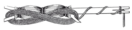 Дорожка привязывается к более или менее толстой, но крепкой бечевке в 21–42 м длины, которая навивается или на палку, или, что еще удобнее, на большую деревянную катушку с рукояткой для навертывания, иногда же на вращающуюся на шпеньке рамочку. Все это, т. е. катушки, навертки и разнородные заграничные блесны, можно достать в любом магазине, торгующем рыболовными принадлежностями.