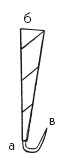 Делают эти блесны так: свертывают из бумаги трубочку а, б (рис. 161) и обвязывают ее, чтобы не развернулась, ниткой; в конец а вставляют приготовленный заранее крючок в, укрепляют трубочку на чем-нибудь, чтобы не упала (например, в сыром песке), и наливают через конец б растопленное олово с прибавкой свинца. Когда сплав остынет, его вынимают из трубочки и придают ему надлежащую форму. Тупой конец блесны, как это видно на рис. 162, отгибается кверху, а в самом сгибе его провертывается узенькая дырочка (ушко). Это собственно не блесна, потому она не блестит и не должна блестеть. Назначение ее состоит в том, чтобы формой своей она походила на букашку, а тяжестью погружала бы крючок до дна… Рыба хватает ее потому, что на крючке ее надета нажива. Тоненькая леска наматывается на такой же мотылек, какой употребляется осенью; разница только в том, что прутик, на котором закрепляется леска, у зимнего мотылька тоньше и немного длиннее, чем у осеннего. Он должен быть более гибок на тот случай, что когда схватит большой окунь, то прутик, сгибаясь, уменьшает степень напряжения тоненькой (в 4 волоска) лески и тем предупреждает ее разрыв.
