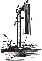 При уженьи на донную удочку по большей части употребляют несколько удилищ; вследствие этого нередко случается, что когда рыболов, привлеченный звоном бубенчика, подойдет, то клевавшая рыба, натянув лесу и почувствовав сопротивление, уже бросила насадку. Во избежание этого французы придумали особого рода приспособление, совершенно понятное из прилагаемого рисунка; когда рыба, взяв насадку, потянет за лесу, то плоская катушка а, на которую она намотана, поворачивается, ударяет шпеньком b по пружине с бубенчиком, с прикрепленной к ножке d снаряда, и продолжает разматываться, давая рыбе возможность беспрепятственно удаляться с насадкою и при каждом обороте позванивая бубенчиком.