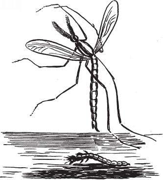 Рис. 80. Долгоножка и ее личинка (мотыль)