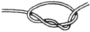 1) Концы двух колен лесы на вершок накладываются друг на друга и завязываются в двойную петлю, которая затягивается как можно крепче. Это рыбачий узел. 2) На конце одного колена делают простую петлю, в которую пропускают конец другого; этим последним обхватывают первый волосок и завязывают такую же петлю. Петли затягиваются, лески растягиваются в противоположные стороны, так что образовавшиеся из петель узлы сильно нажимают один на другой и этим затягиваются еще крепче (рис. 19). Если леска делается из т. н. буйволовых волосков или жилок, то употребляется первый способ (рис. 17 и 18), потому что в первом способе связывания нет такого резкого сгиба, как во втором.